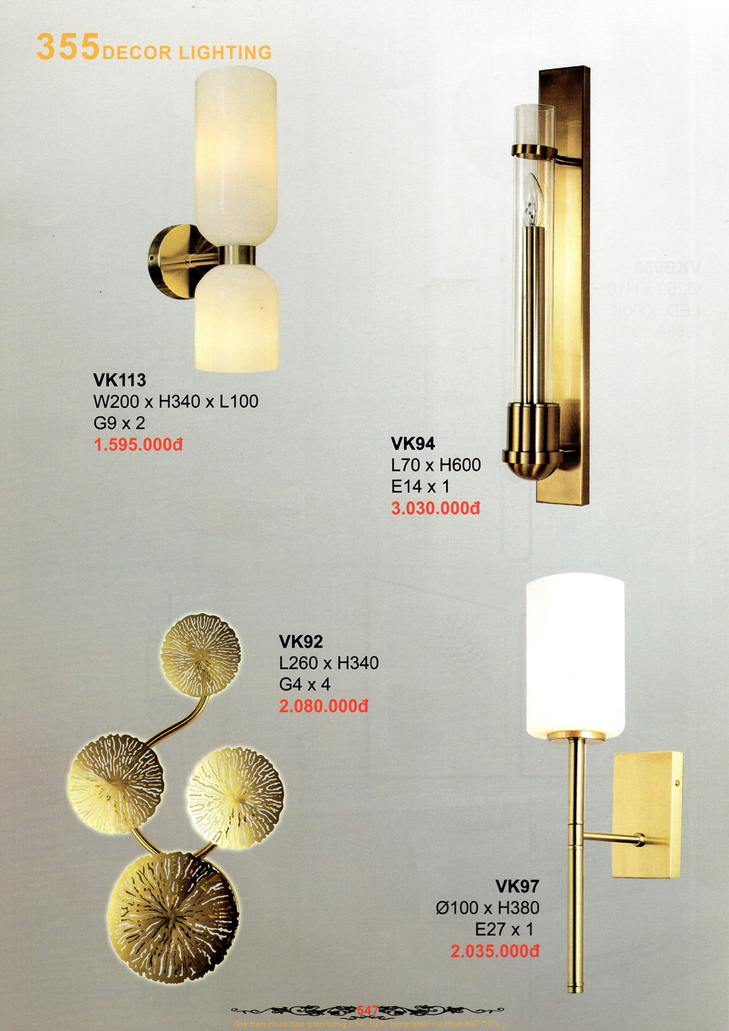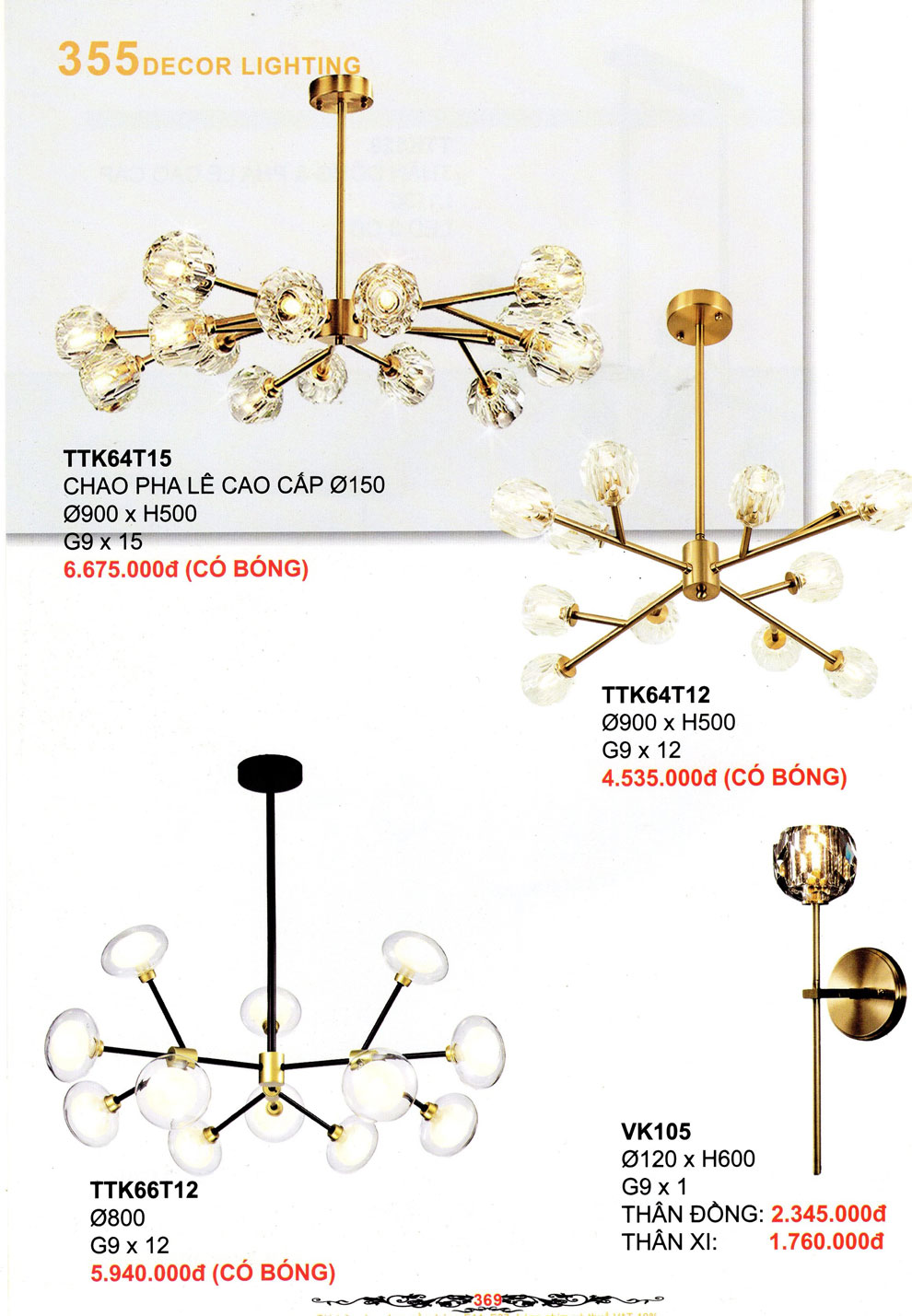 CATALOGUE 355 DECOR LIGHTING – ĐÈN TRANG TRÍ