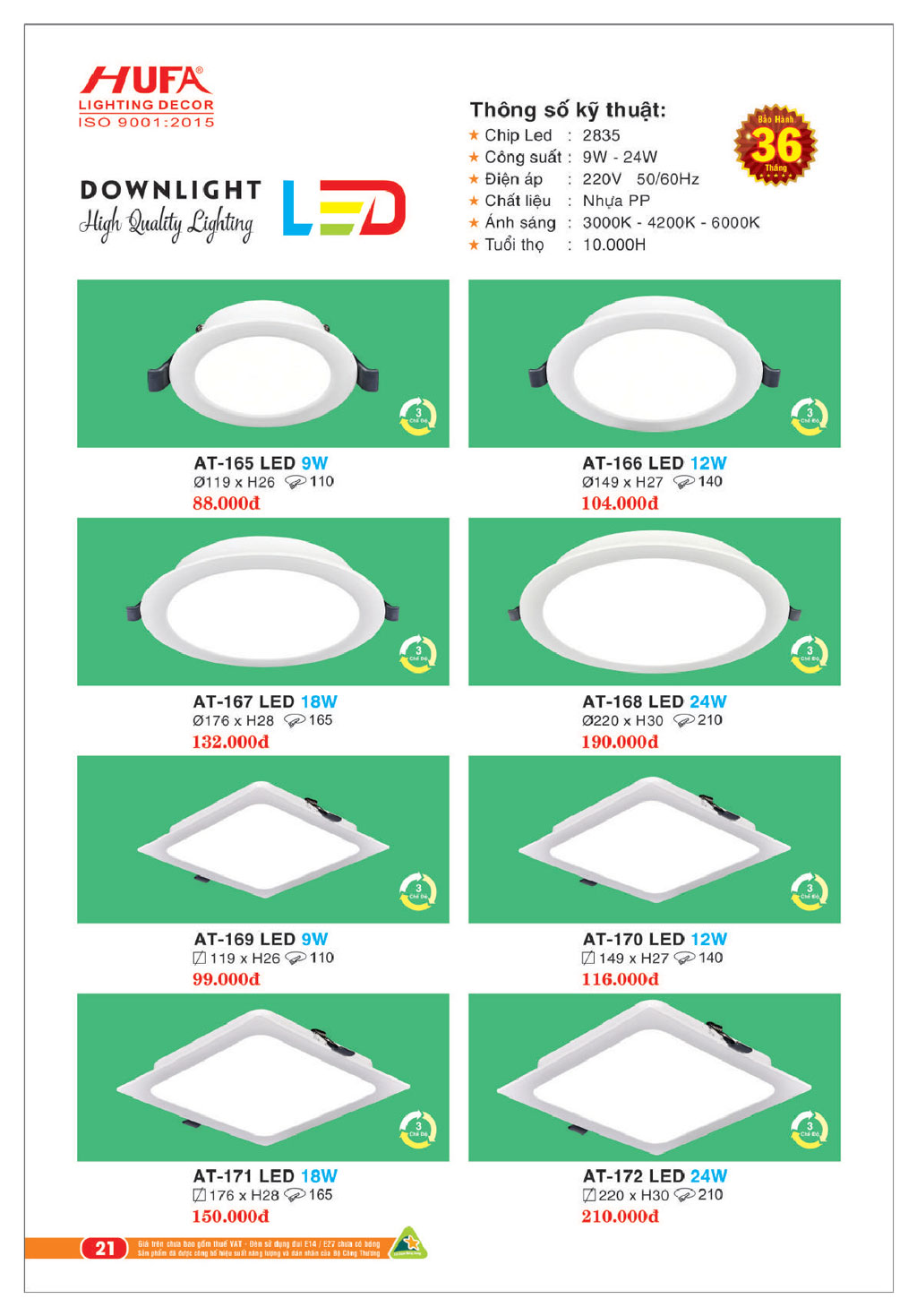 CATALOGUE HUFA 2021 – THIẾT BỊ CHIẾU SÁNG