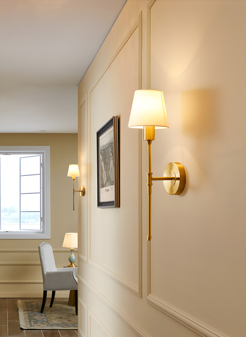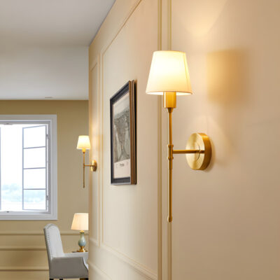 Đèn gắn tường GT3000 có đường nét tối giản, mang đậm phong cách Tân cổ điển Châu Âu thời thượng. Điểm nhấn của sản phẩm chính là phần thân đèn bằng hợp kim xi mạ đồng sáng bóng, liên kết với chao đèn bằng vải cao cấp tạo hiệu ứng ánh sáng lan tỏa nhẹ nhàng.