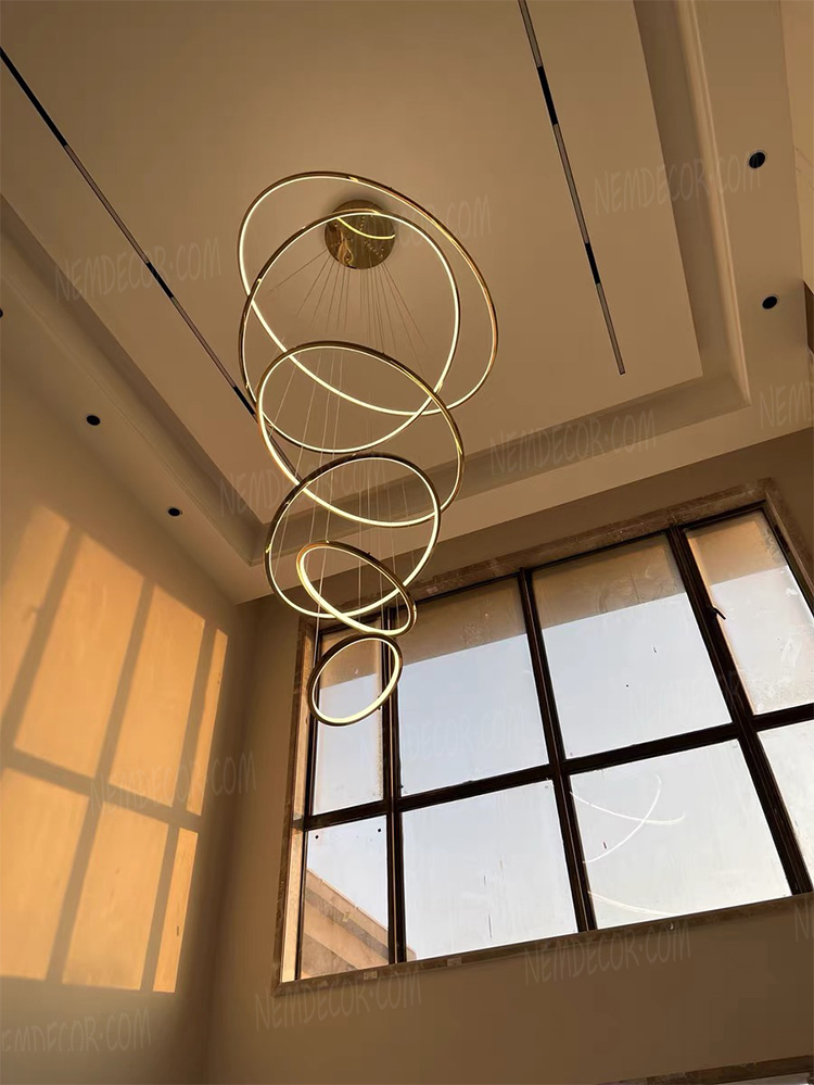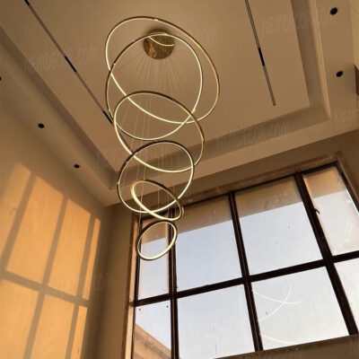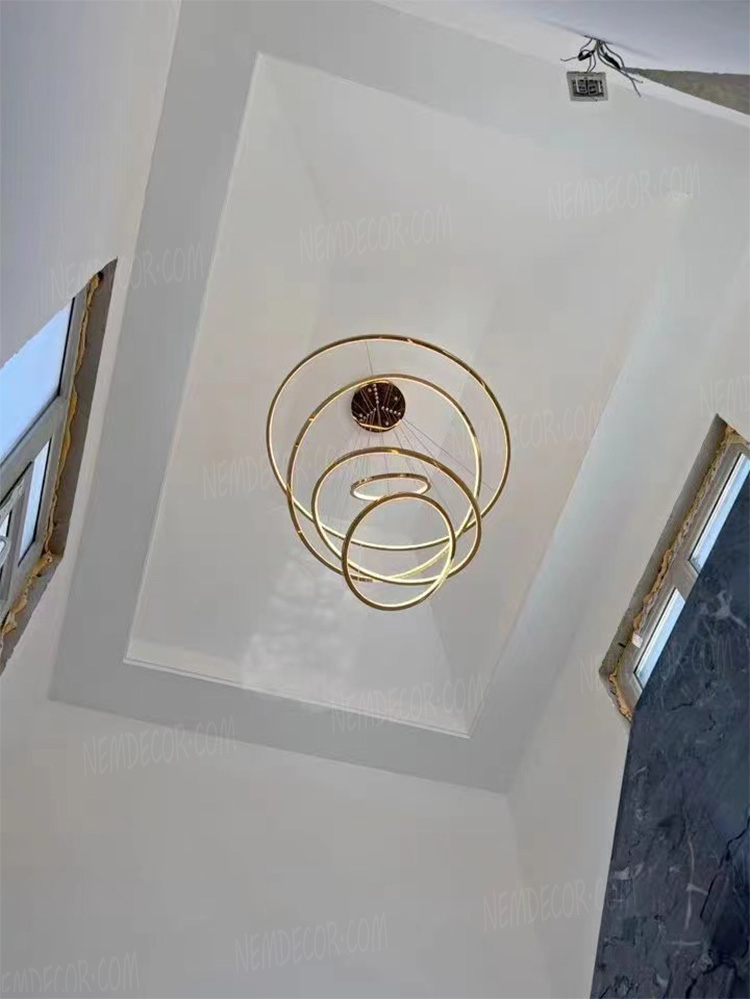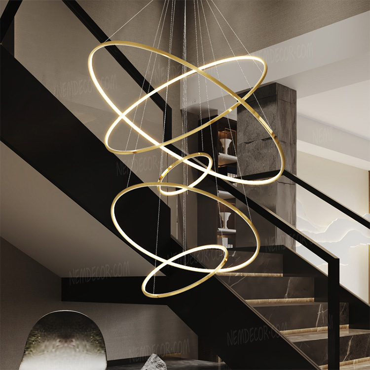Đèn thả thông tầng 5 vòng tròn hợp kim vàng bóng cao cấp 72350