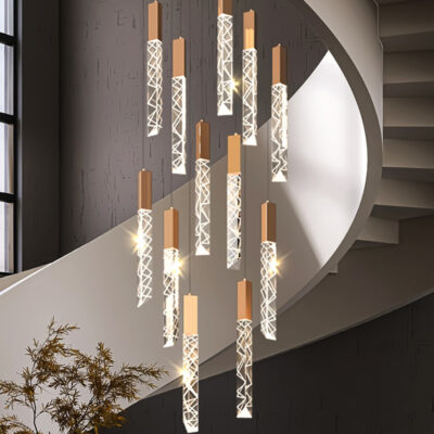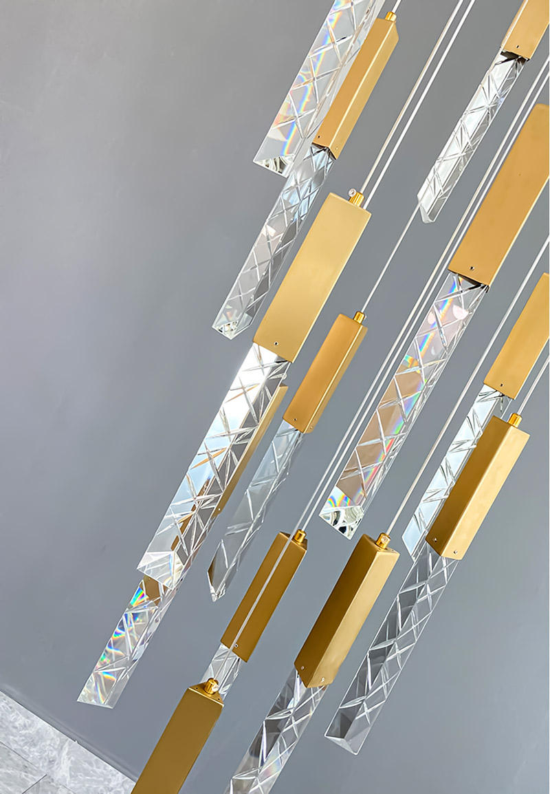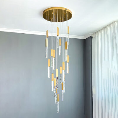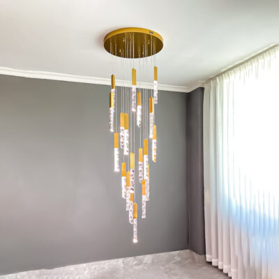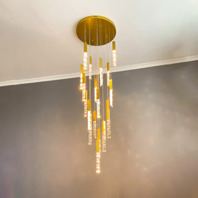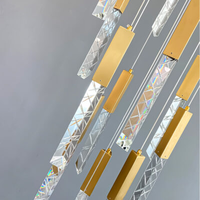 TH 8289: Ø600 x C2500 x 18 bóng LED – Khung màu vàng xước, Bóng pha lê K9 CAO CẤP