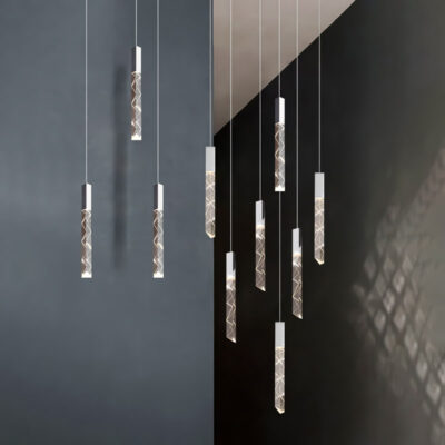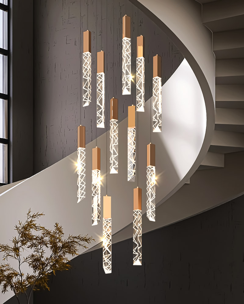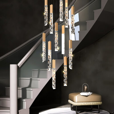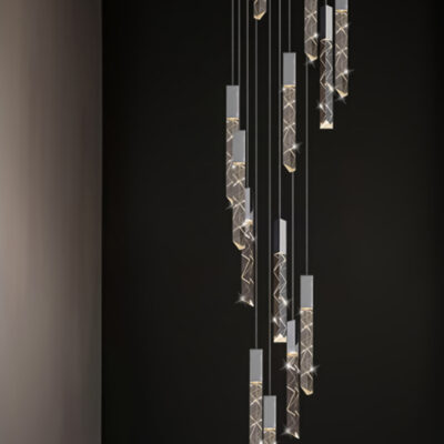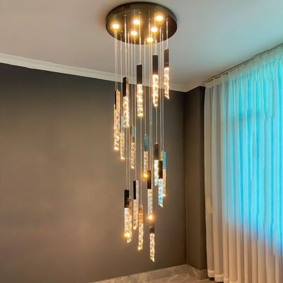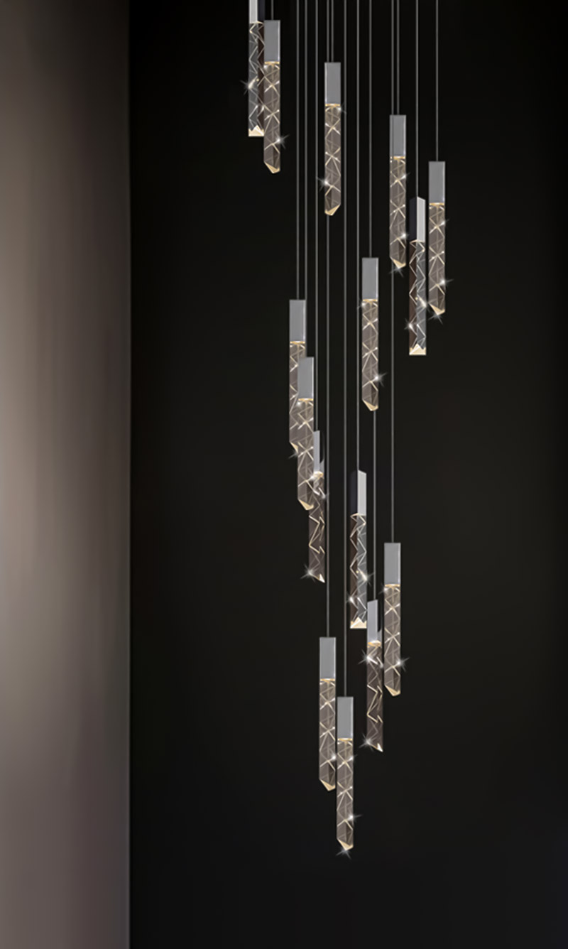TH 8288: Ø600 x C2500 x 18 bóng LED – Khung màu bọc titan, Bóng pha lê K9 CAO CẤP
