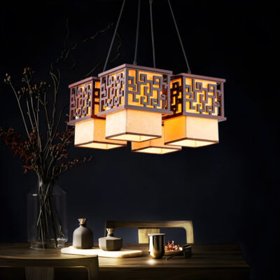 Đèn thả trần trang trí thủ công bằng gỗ mỹ nghệ THVRG86023