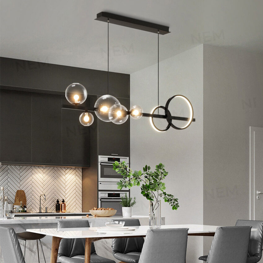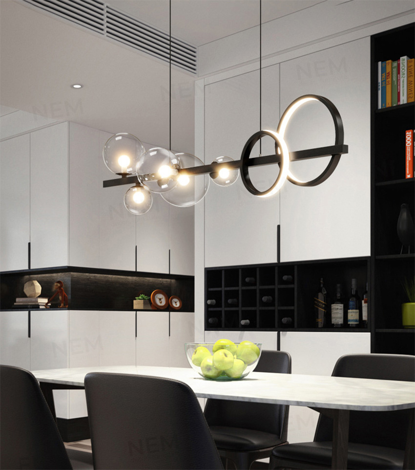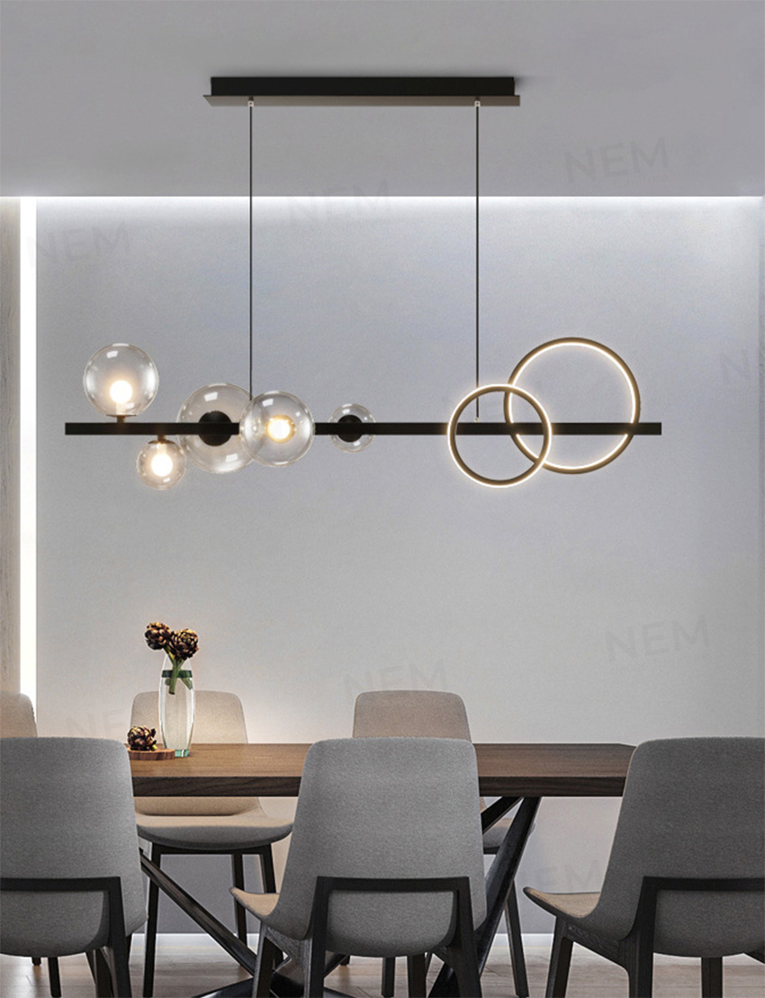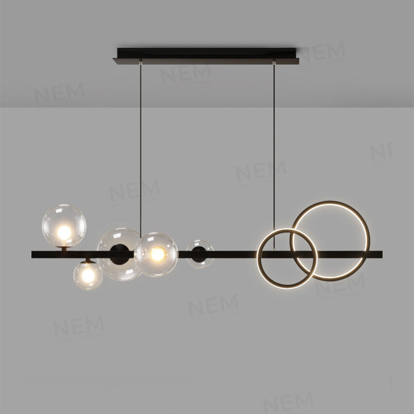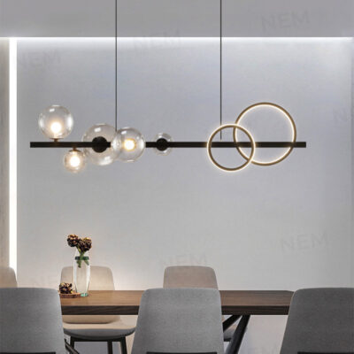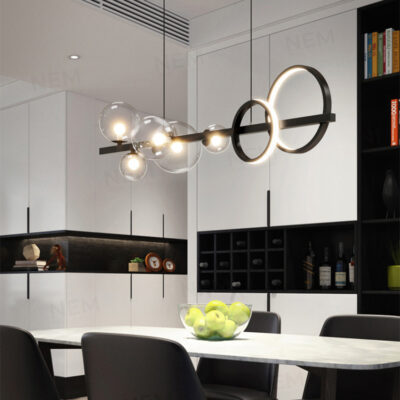 Đèn có ngoại hình bắt mắt có thể làm điểm nhấn cho các không gian: phòng khách, phòng ăn, thả bàn ăn, quầy bar, quán cafe,…