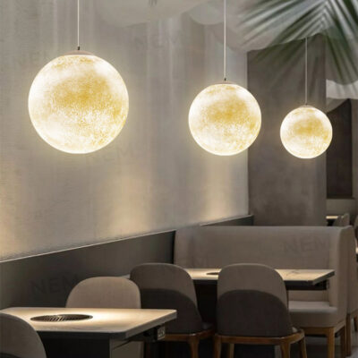 Đèn thả quả cầu mặt trăng THD20 phù hợp với không gian sang trọng như phòng khách, phòng ngủ, nhà hàng, quán cà phê, studio chụp ảnh…Đem đến vẻ đẹp tinh tế và trang nhã.